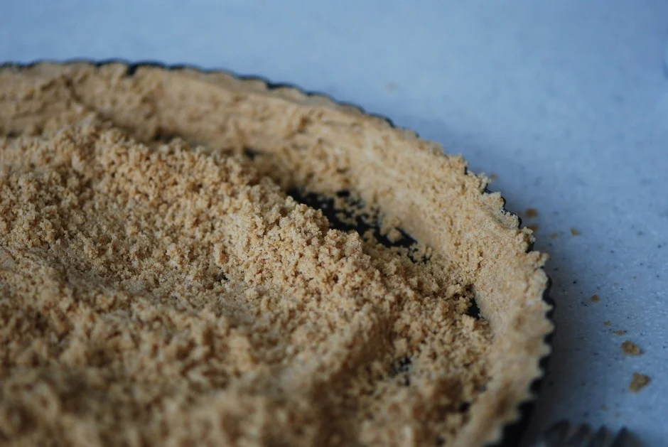 - Dump the mixture into a 10 inch tart pan and press it into place using your fingers and/or a fork. Make sure to push the crust up the sides!