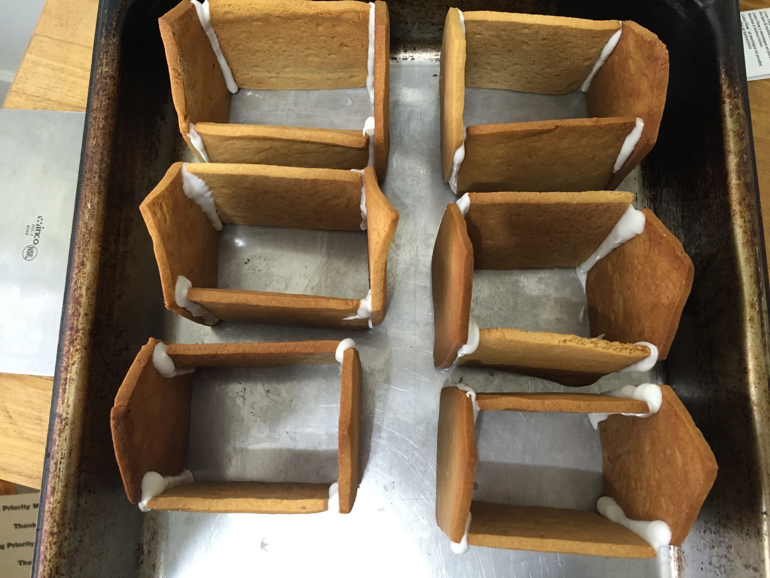 Gingerbread houses can be the cause of much frustration. After spending hours planning, baking, and then constructing, it can all fall apart due to simple mechanical issues. The prime culprit in any gingerbread house disaster is the cement used to hold everything together. Do you know what kind of icing you’re using? The second issue is simple structural engineering. Are you building with the equivalent of drywall sheets or are you building with bricks?
