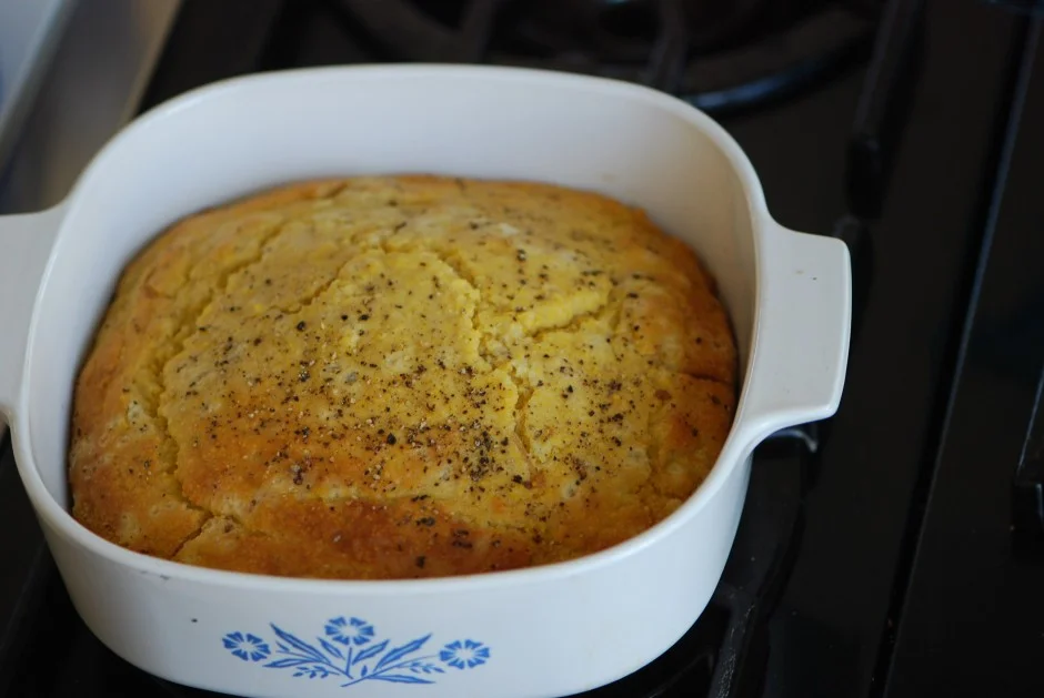 Corn bread is the quickest of quick breads. No fussy whisking, no tempering eggs. Just throw the ingredients together in a bowl and stir. And what happens when you remove it from the oven?
