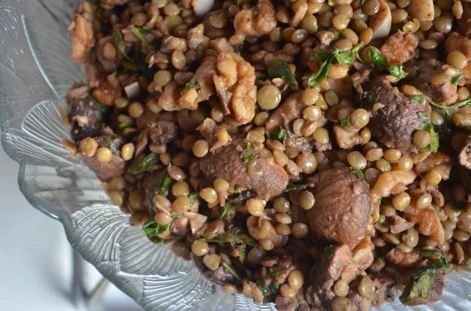 6. Remove vegetables from oven, stir into finished lentils. Add balsamic vinegar and flax seed.