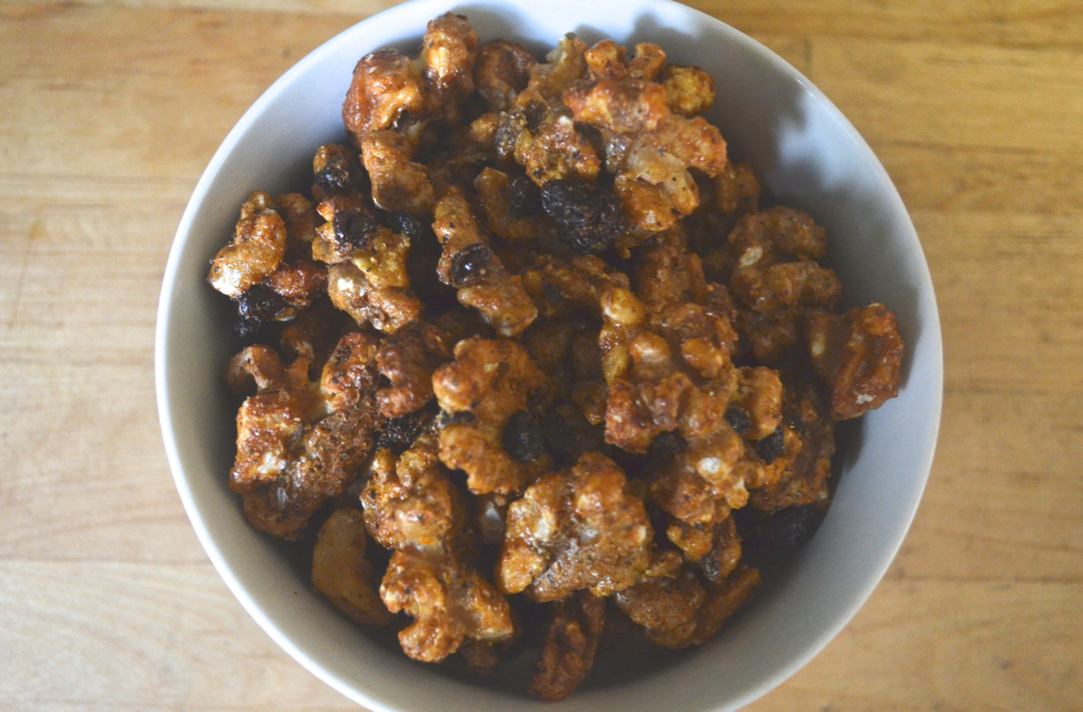 Yes, the trail of British colonization/oppression left us with a unique flavor map that is hard to describe without looking through the lens of conquest. I started with the wintry walnut, and thought it might be nice to pair them with currants (I always like a bit of a chew to balance the crunch of the nut when I serve these). I steered the bowl around to early English colonies, picking up some palm sugar to sweeten the nuts and some ground cloves and ginger to spice them. I thought they needed some perfume, and so zested the rind of a few oranges for good measure. They were still missing something, so I took one more trip back around the globe and picked up a heady crush of ground black pepper. With that, I was done. A food map based on British Imperialism, potentially insensitive, definitely delicious.