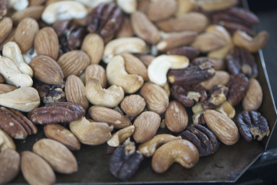 - Mix the nuts in a large bowl and then spread them evenly over two cookie sheets. Make sure to keep them in one layer for even roasting.