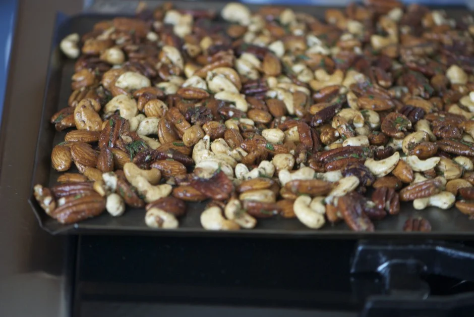 These nuts are spicy, toasty, mega-crunchy (from double roasting), and will be the hit of your parties. They can be repurposed a thousand different ways, make the nuts as spicy or sweet as you want. Don’t have rosemary on hand? Most herbs pair perfectly with roasted nuts. So go ahead, experiment.