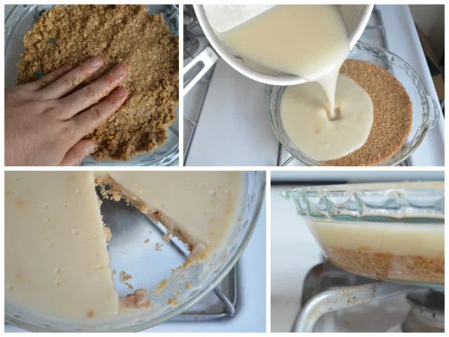Pour the yoghurt mixture into the pie dish, into the crust.